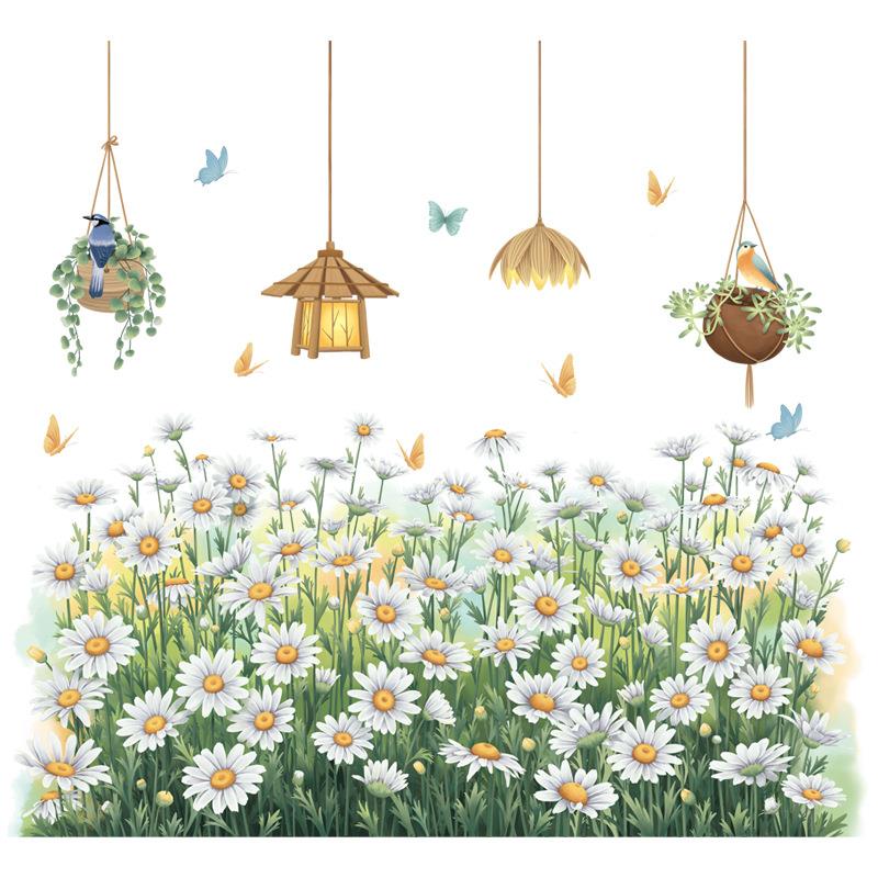 自粘墙贴田园花朵栅栏卧室幼儿园踢脚板玻璃贴纸房间壁纸背景装 饰