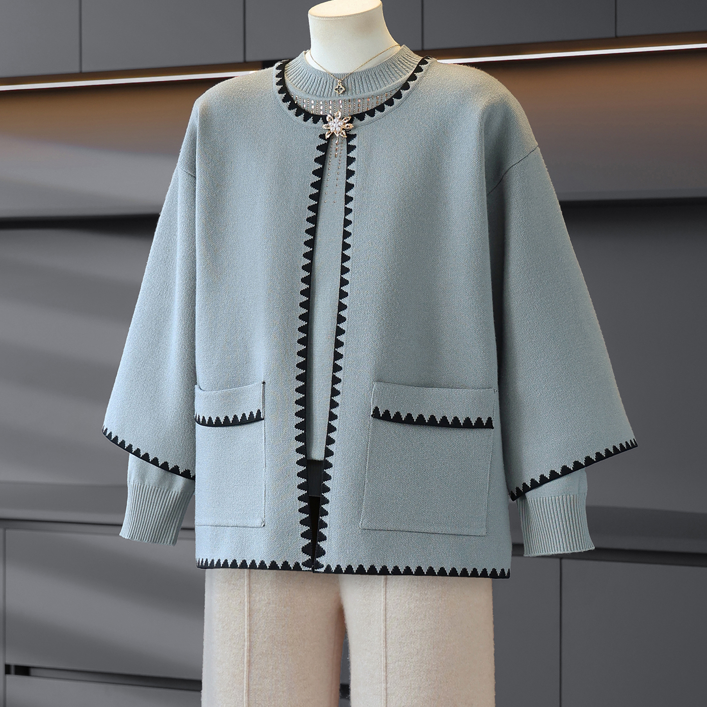 外套 中老年女春秋加绒毛衣开衫 妈妈秋装 针织两件套上衣2025新款