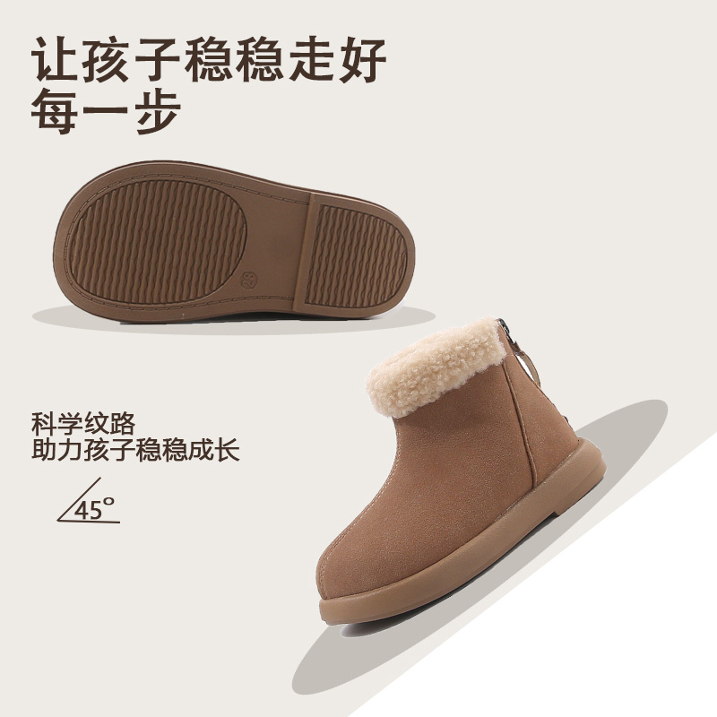 女小童学步鞋 婴幼儿二棉鞋 女童靴子短靴 加绒2025年冬季 女宝宝棉鞋