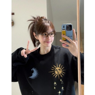 设计感小众秋冬加绒潮牌慵懒长袖 美式 高街圆领重磅卫衣女2025新款