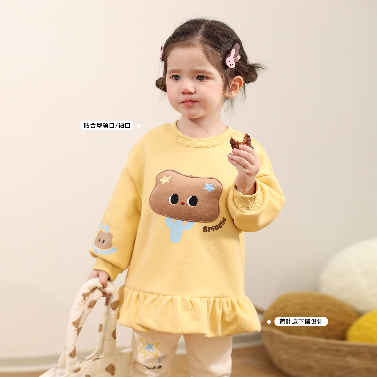 新款 卫衣加绒2025冬季 婴儿卡通洋气上衣 女宝宝中长款 NORNOR童装