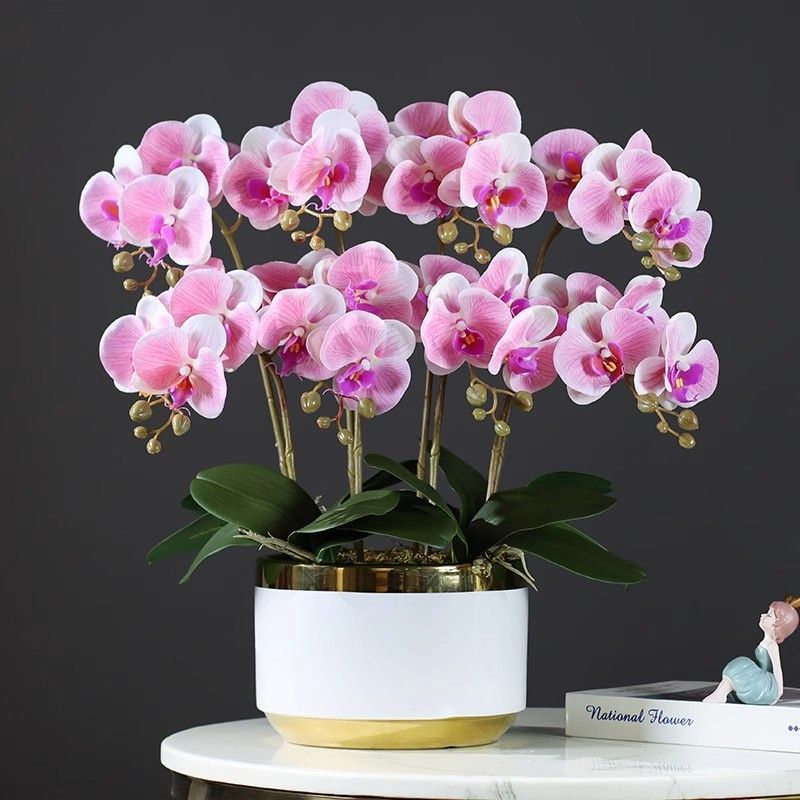 高品质仿真花蝴蝶兰花艺假花盆栽客厅摆设电视柜茶几摆花装 饰摆件