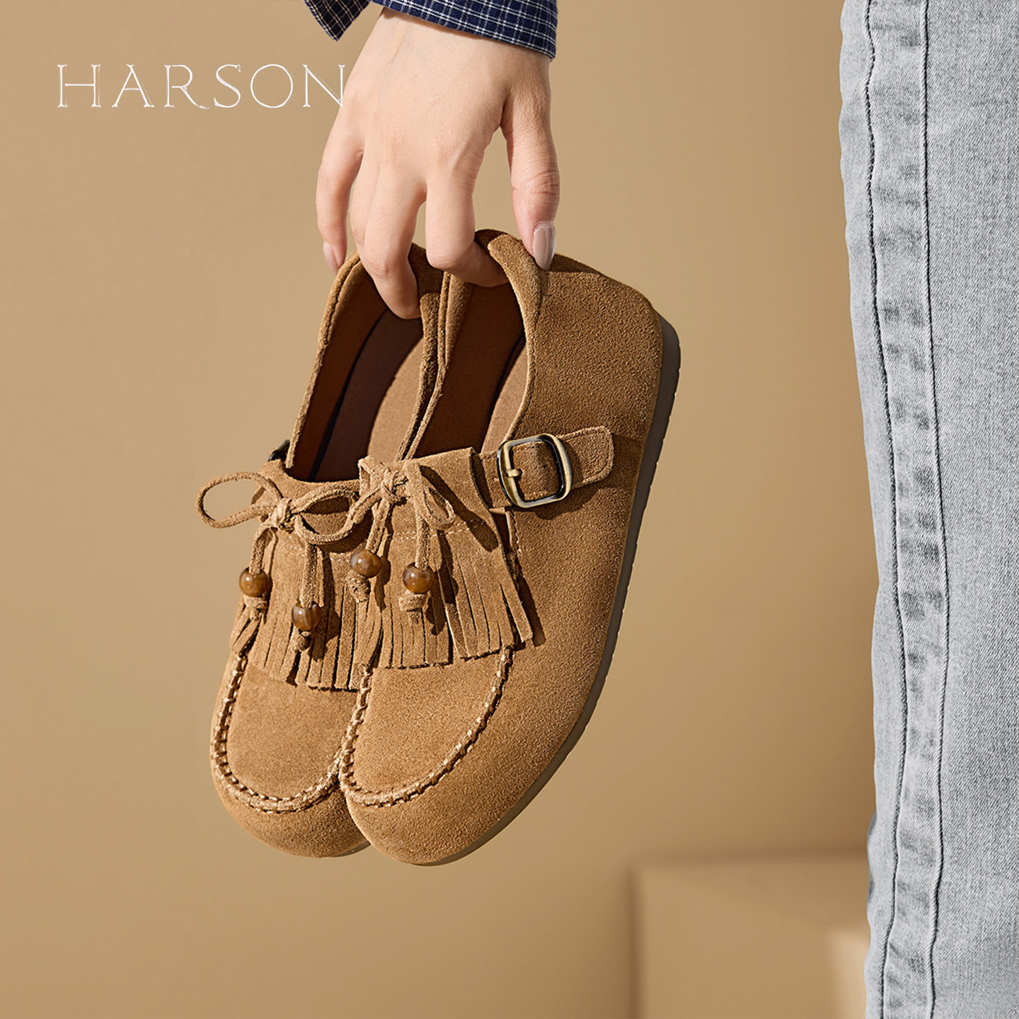 女鞋 懒人休闲一脚蹬单鞋 2025新款 平底通勤鞋 春秋季 哈森复古勃肯鞋