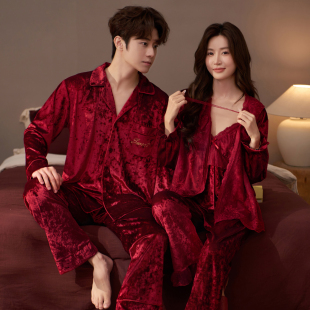 乐姿梦情侣睡衣秋冬款 金钻绒女带胸垫吊带可外穿男家居服三件套装