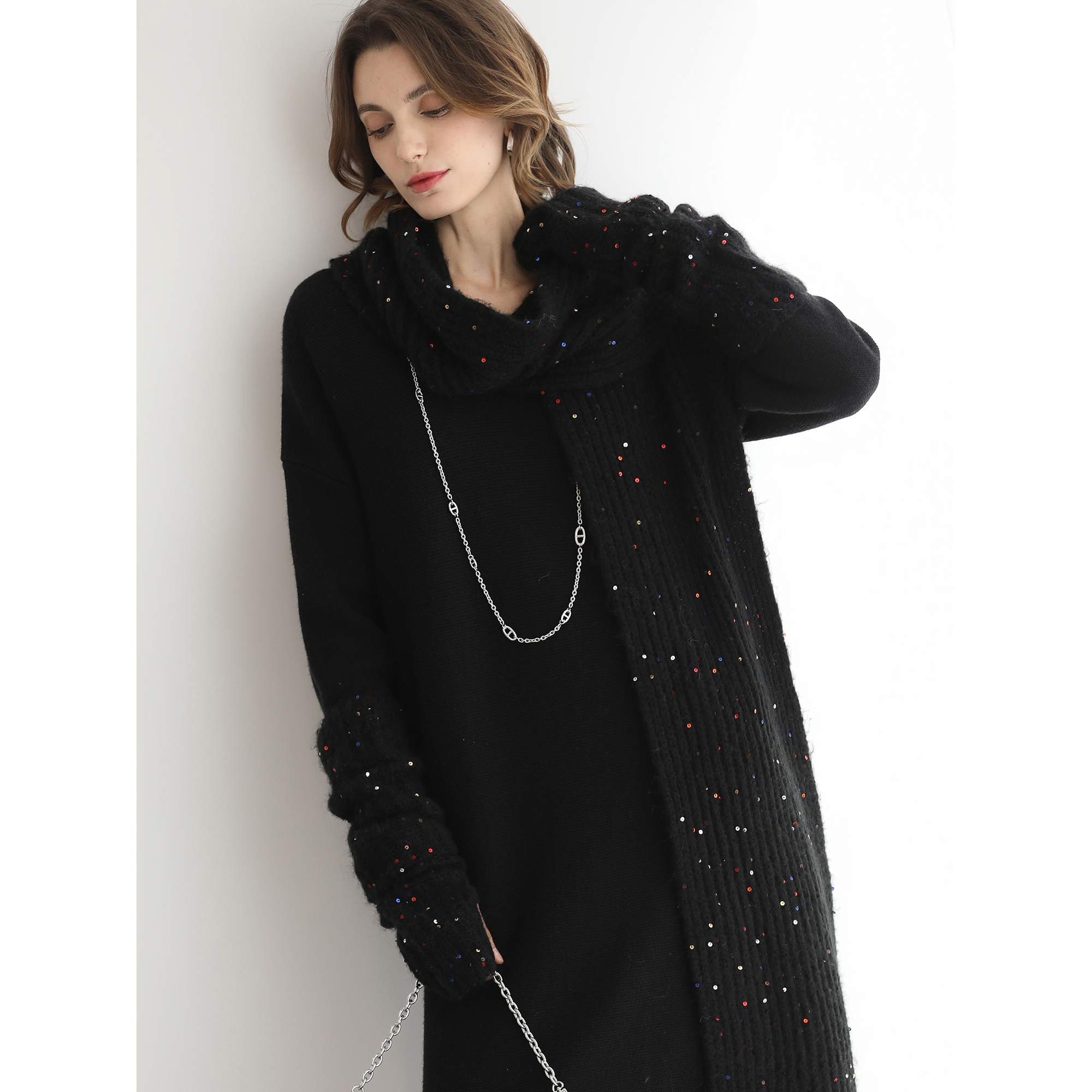 DPLAY2025秋季 气质黑色连衣裙毛衣裙针织连衣裙设计感显瘦长裙女