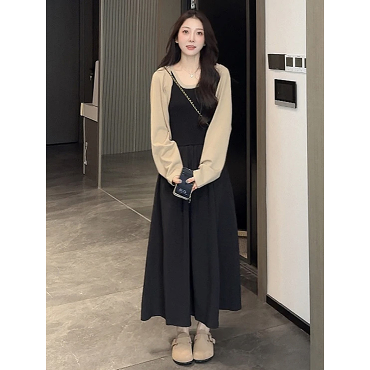 上衣搭中长款 设计感百搭针织开衫 拼接连衣裙两件套 女新款 2025秋季