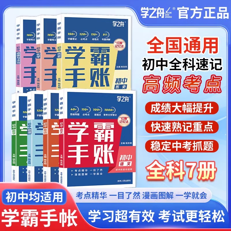 学之舟一学就会 初一二三基础手册清单大全 学霸手账初中学霸笔记语文数学英语物理化学生物政治历史地理小四门必背知识点人教版