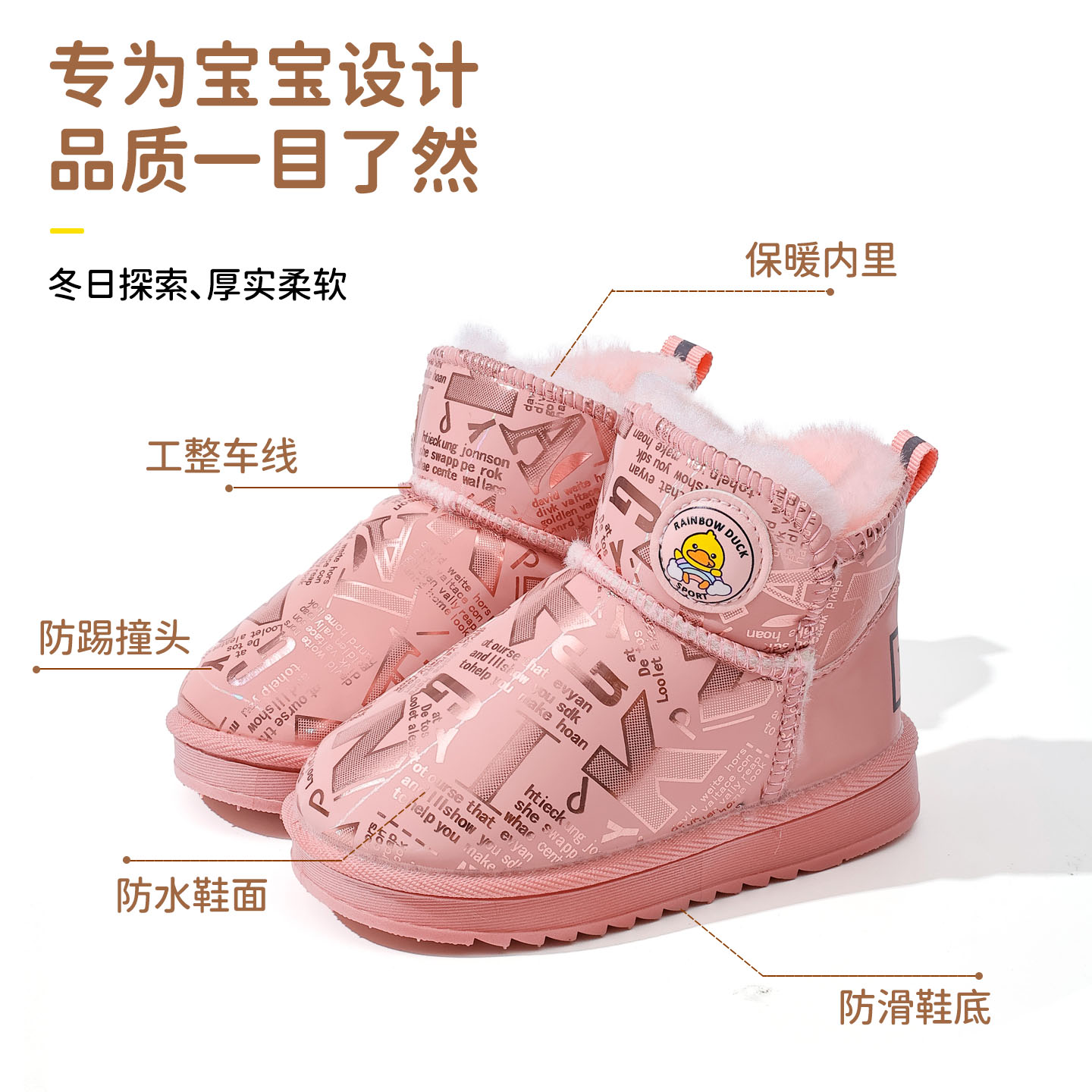 女童雪地靴2025年新款 宝宝棉靴子小孩男童防水防滑冬天短靴 秋冬季