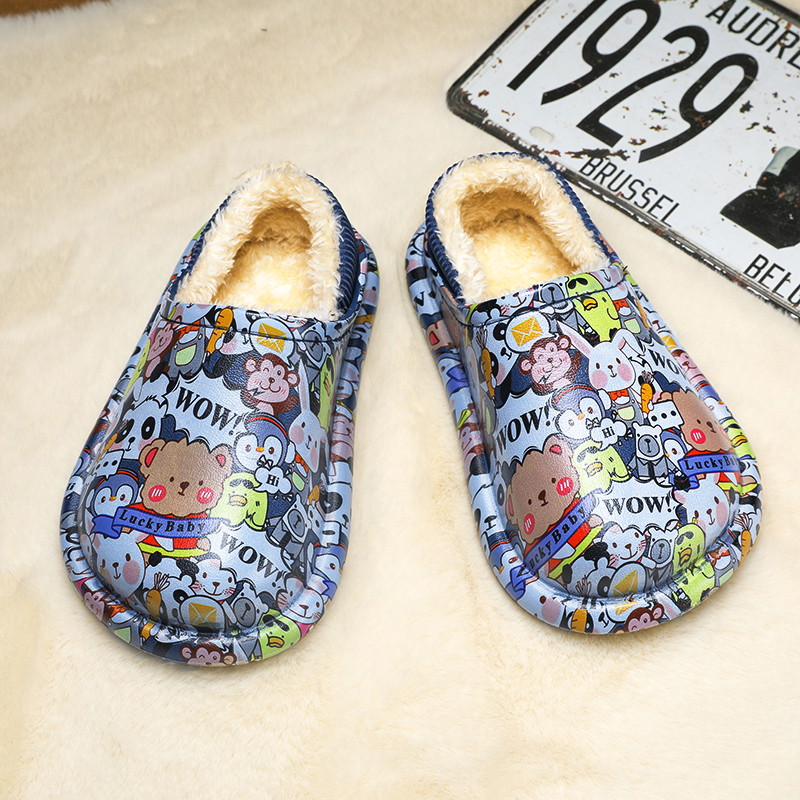 包跟外穿加绒保暖男孩棉鞋 男童棉拖鞋 儿童毛毛拖鞋 2025新款 秋冬季