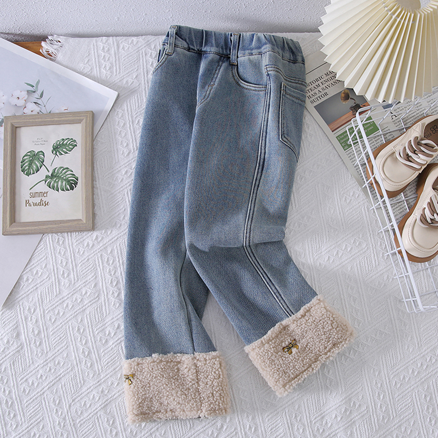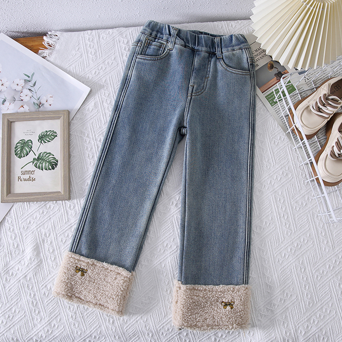 子女宝宝牛仔裤 小女孩直筒裤 加绒儿童秋装 长裤 秋冬 2025新款 女童裤