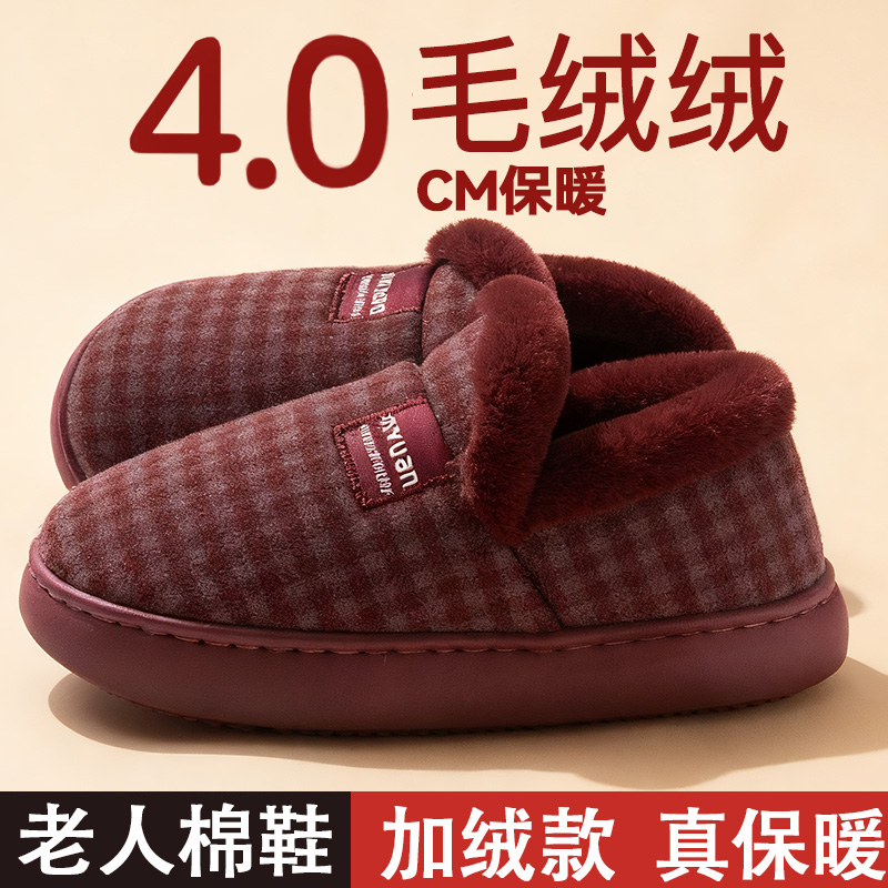外穿男 室内加绒加厚保暖中老年人棉鞋 老人包跟棉拖鞋 防滑女士冬季