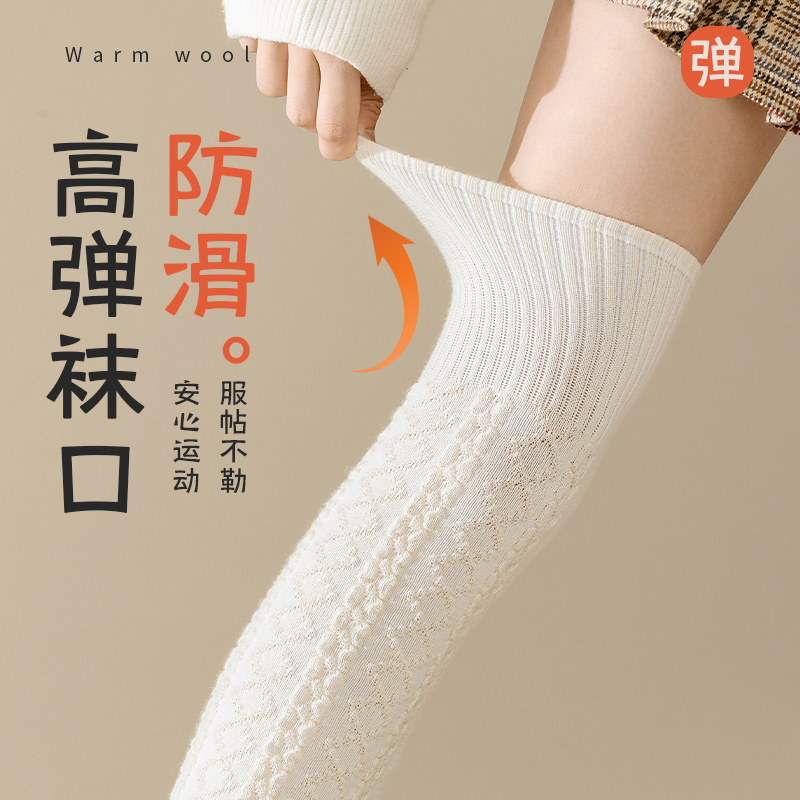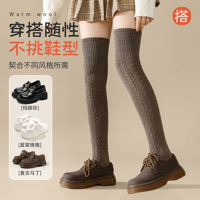 羊毛过膝袜子女款 微压显瘦长筒袜美拉德色加绒加厚高筒袜子 秋冬季