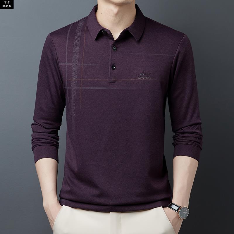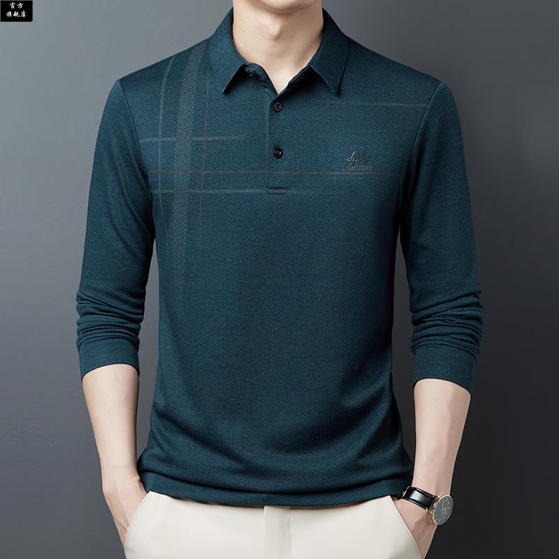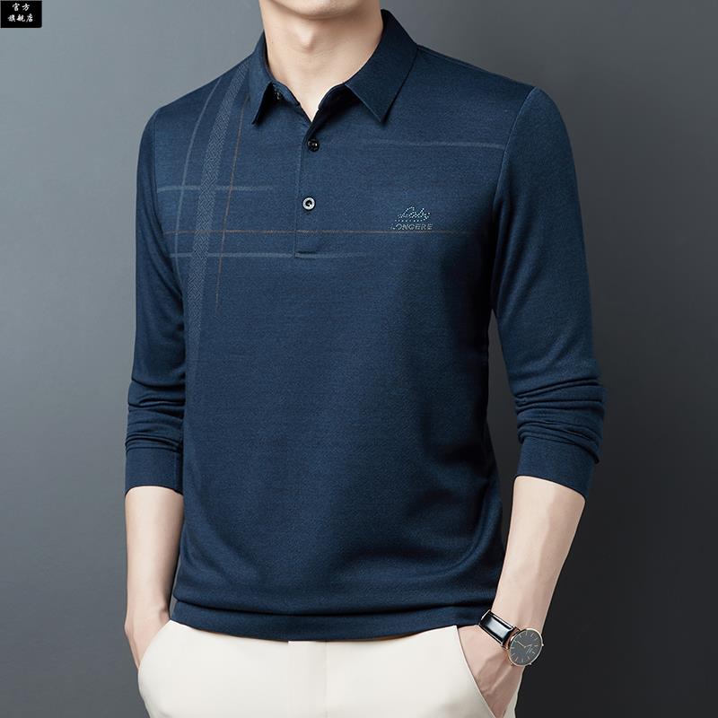 t恤翻领宽松新款 薄款 长袖 中年春秋季 冰 体恤男士 保罗官方爸爸长袖