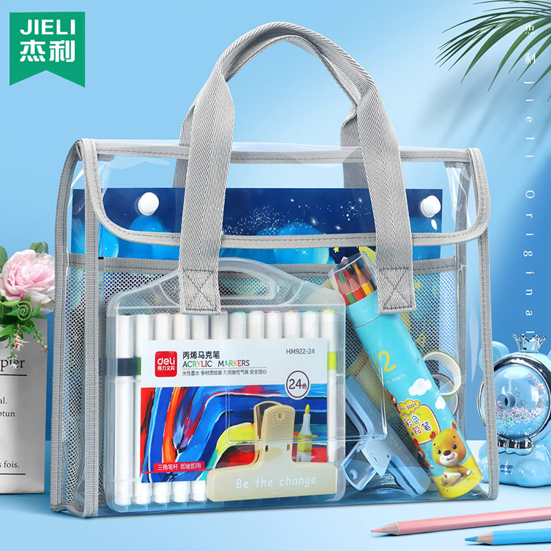 得力文件袋学科袋科目分类袋拉链袋大容量学生双层资料书本学生课本手提拎网纱分科书袋a4试卷收纳袋