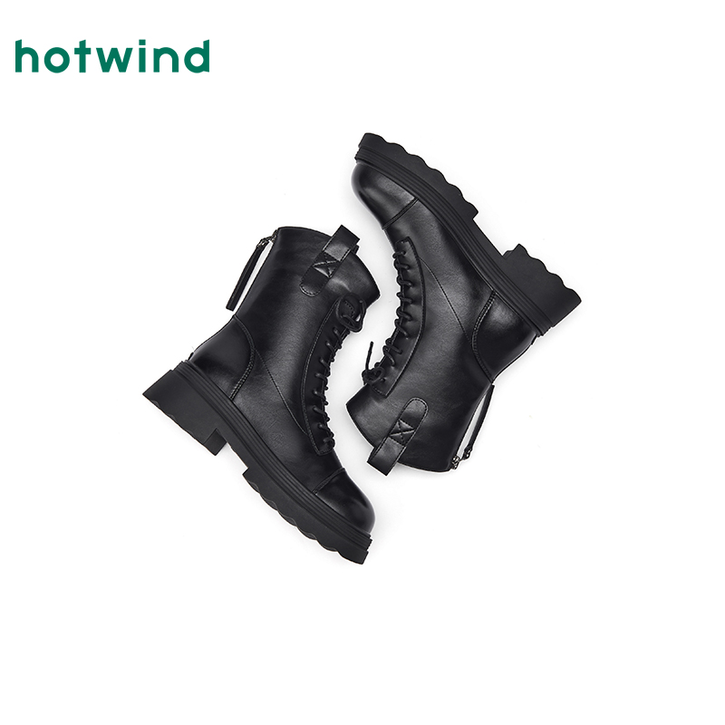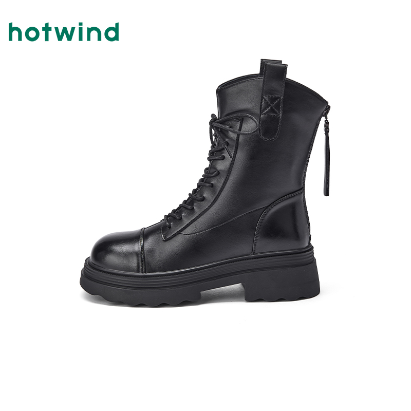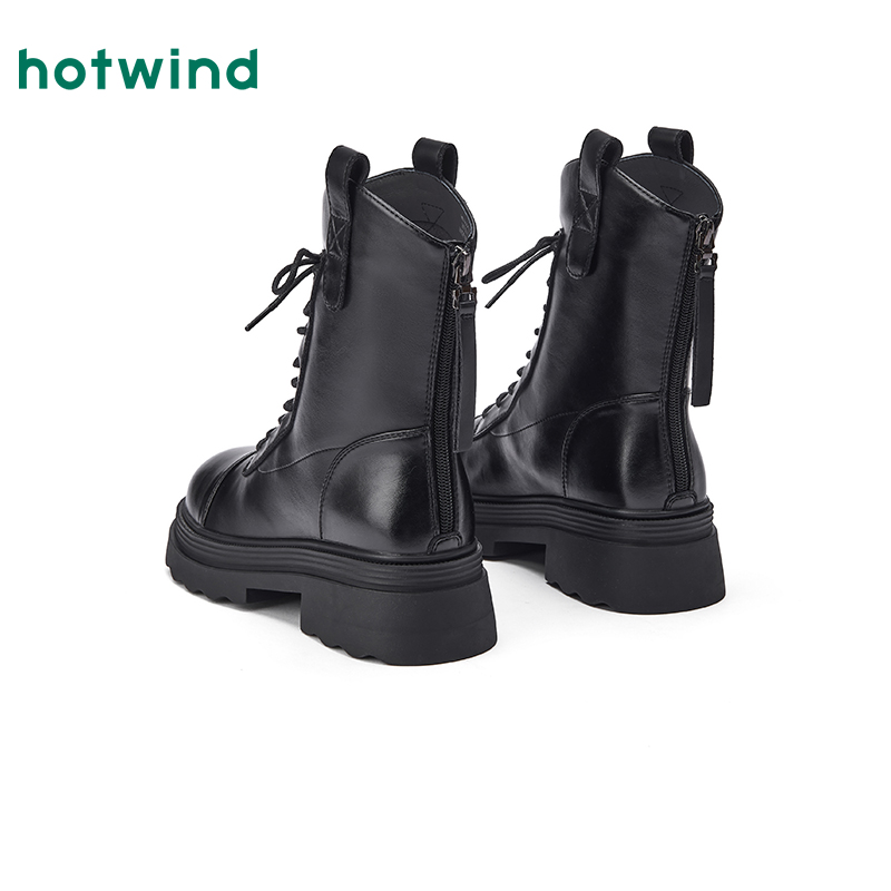 黑色增高靴子女时尚 新款 休闲皮面短靴 2025秋季 环球厚底马丁靴女款