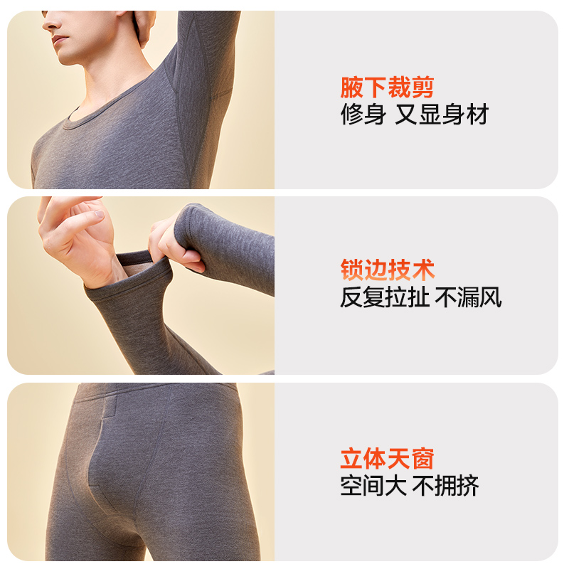 全棉毛衫 健丹鸟秋衣秋裤 抗菌保暖内衣冬季 男纯棉薄款 内穿打底 套装