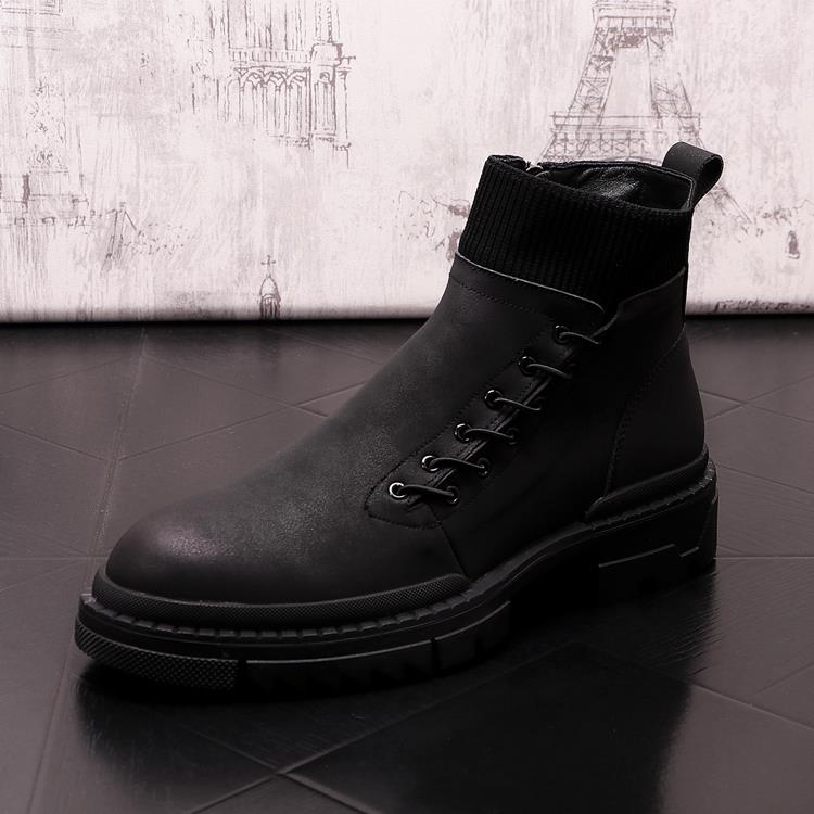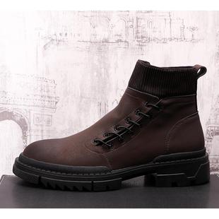 加男鞋 靴子尖头高筒男靴厚底增高马丁靴短靴皮鞋 1015e 皮鞋 男士
