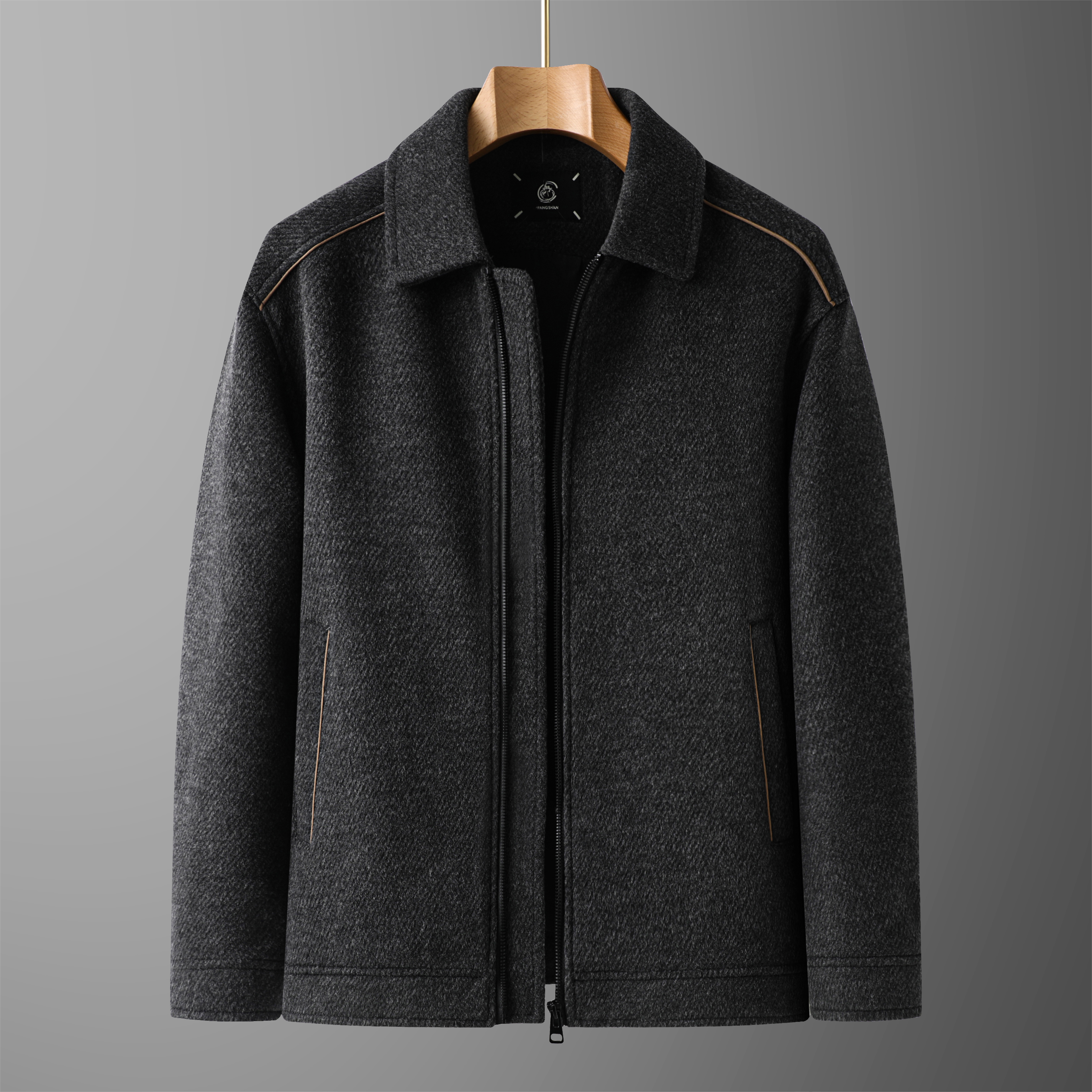 海澜之家山不在高复古翻领PU皮夹克25秋新国风工装 暗纹皮衣外套男