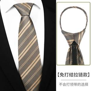 感领带男棕色商务结婚新郎免打结拉链式 配饰手打1010r 咖色西装