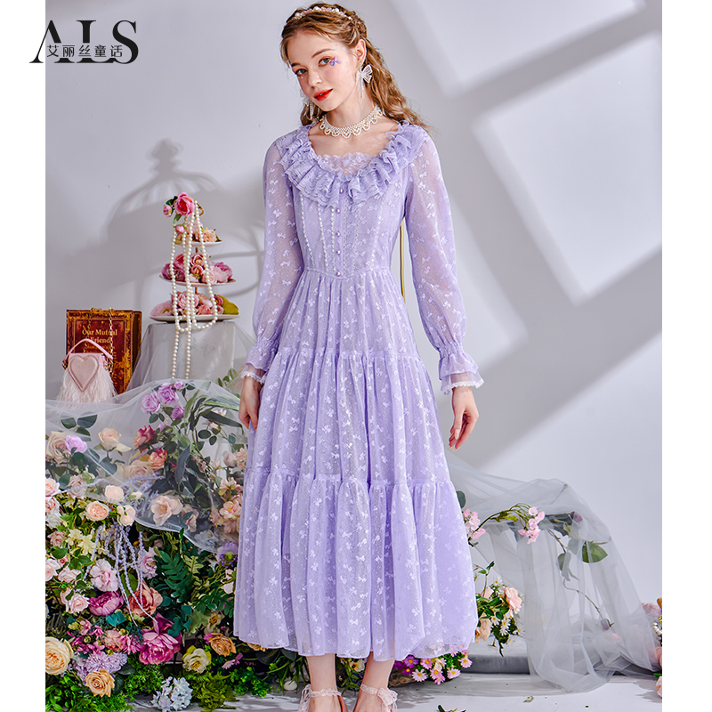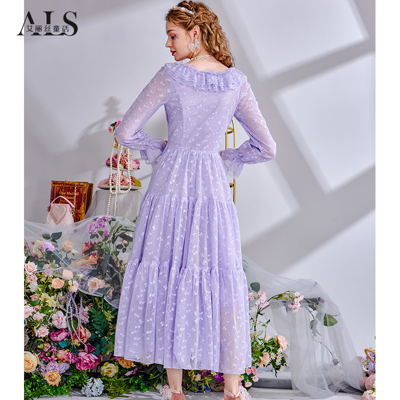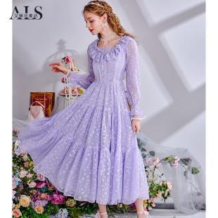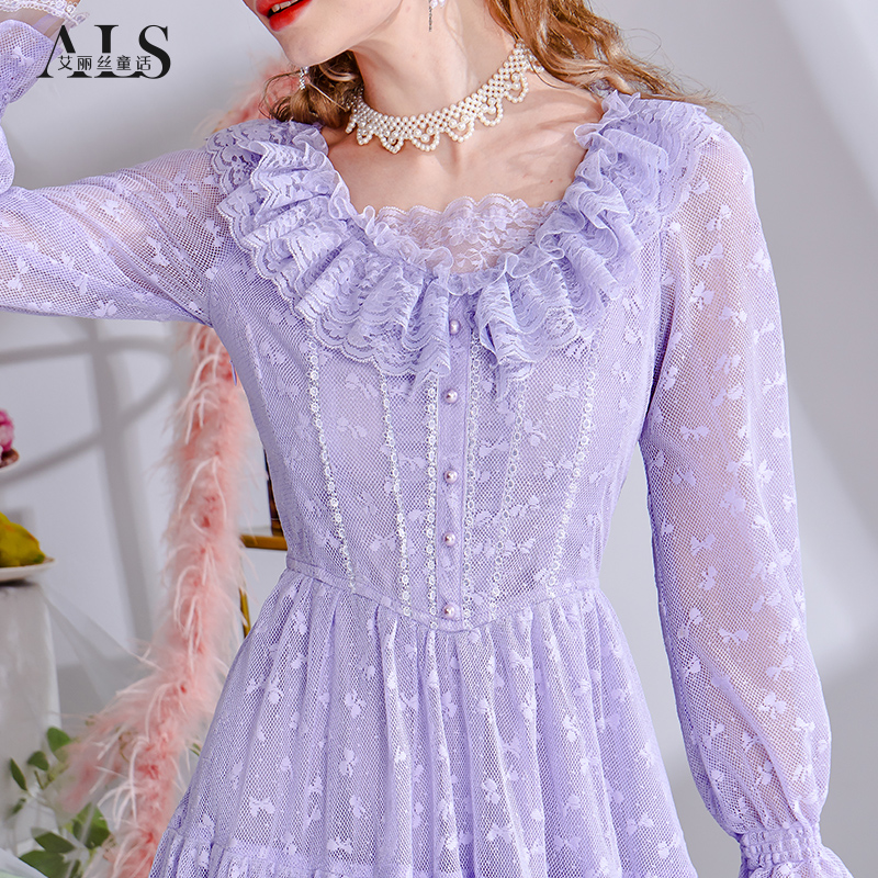 预售洋气桑蚕丝真丝丝绒连衣裙女2025年秋季 蕾丝拼接中长裙子 新款
