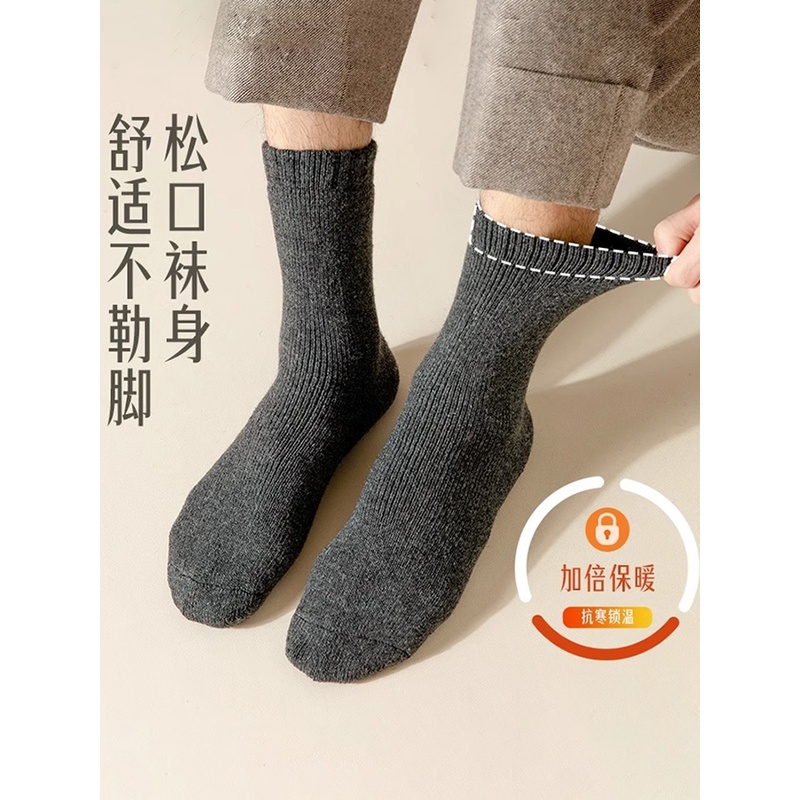袜子男士 加绒加厚保暖自发热特厚耐磨高弹透气毛圈中筒毛毛袜 冬季