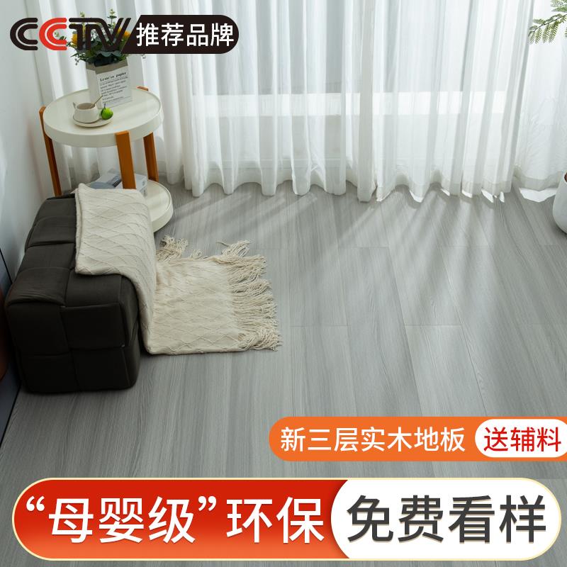 新三层多层实木复合地板家用耐磨防水地暖灰色奶油风环保厂家直销