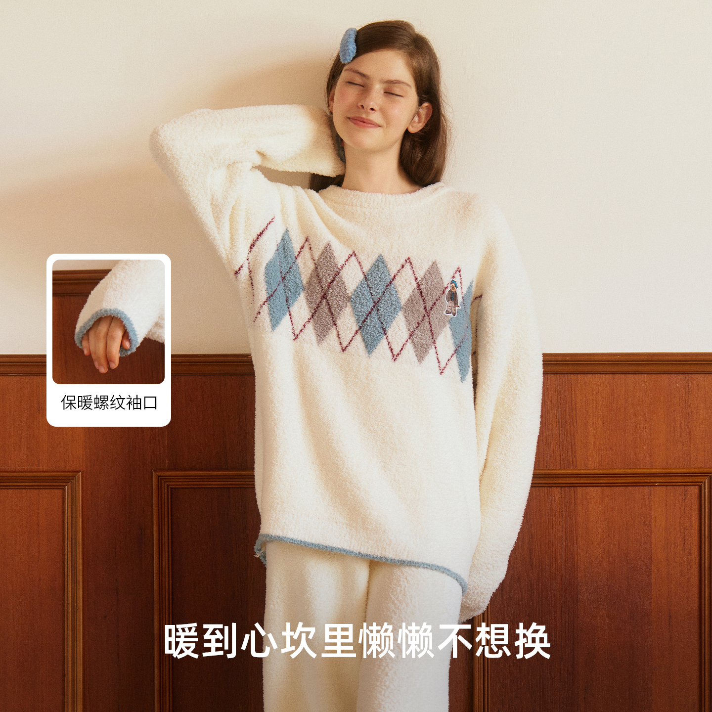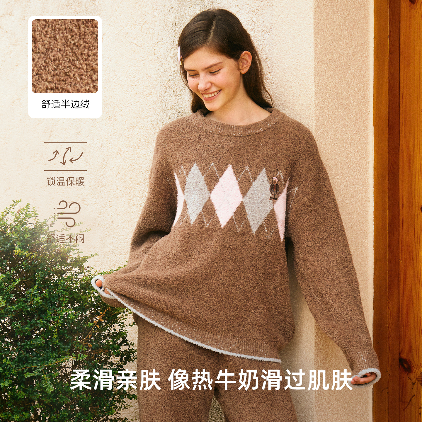 半边绒情侣加绒家居服套装 TeenieWeenie小熊秋冬睡衣女款 2025新款