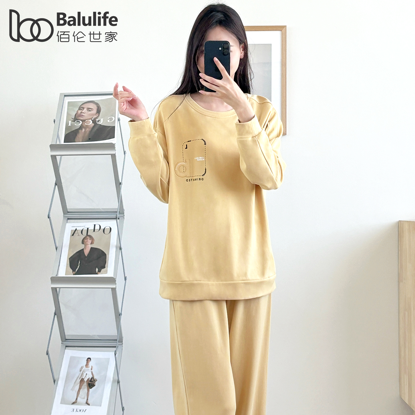 圆领套头宽松抗菌可外穿秋冬家居服 舒绒棉长袖 睡衣女款 春秋季