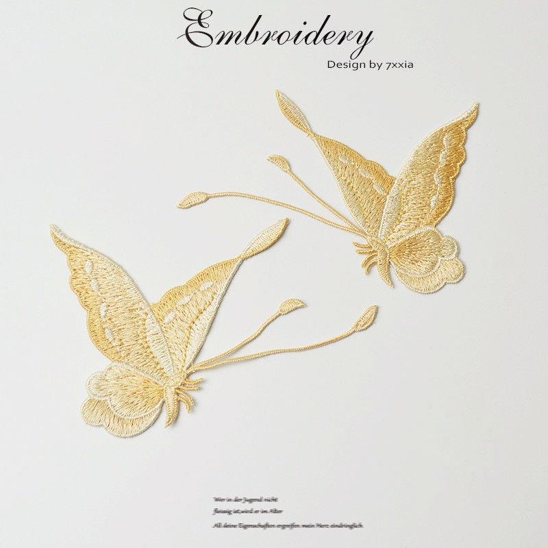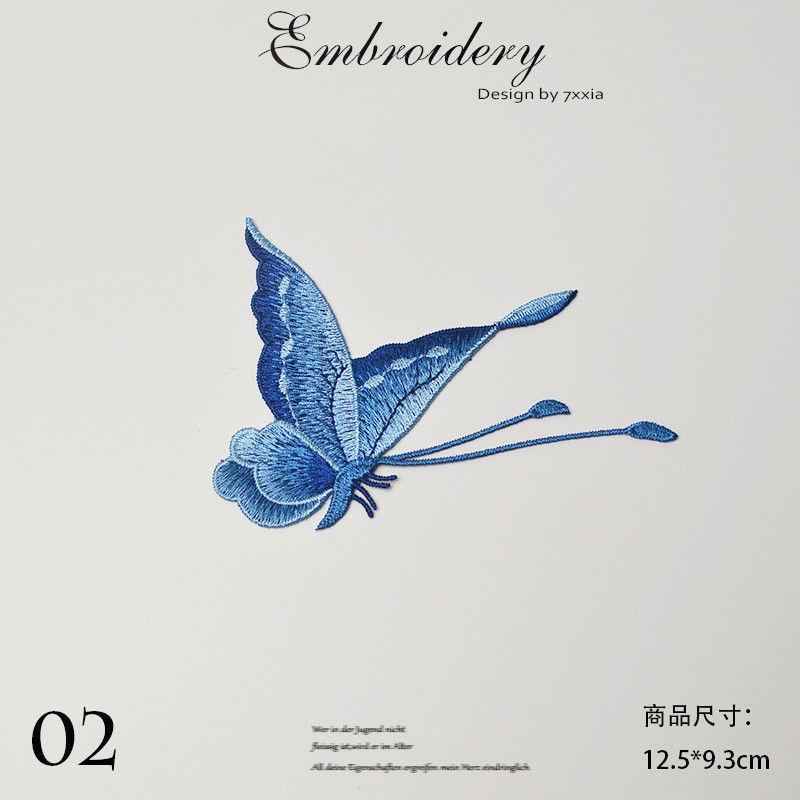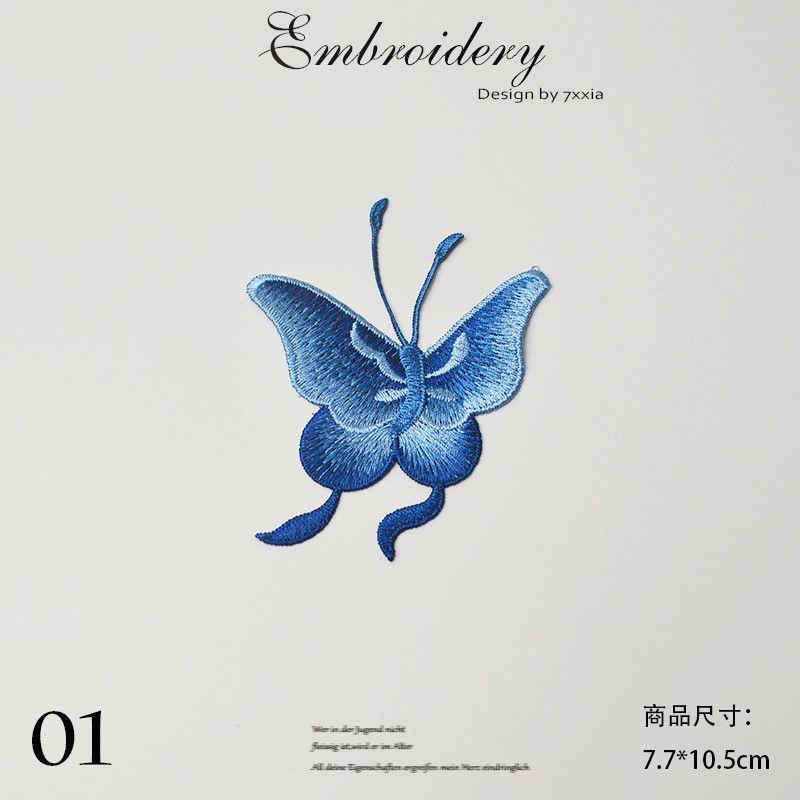 蝴蝶花朵刺绣布贴汉服旗袍百搭破洞补丁贴可缝个性 饰贴小号 衣服装