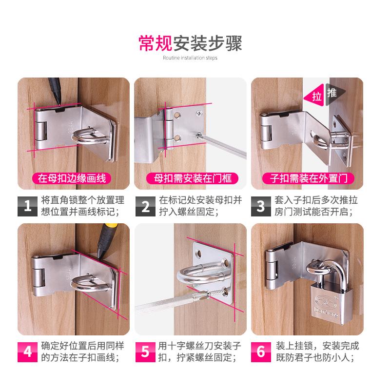不锈钢直角门锁扣90度门扣带锁插销门栓搭扣防盗门扣挂锁门锁扣