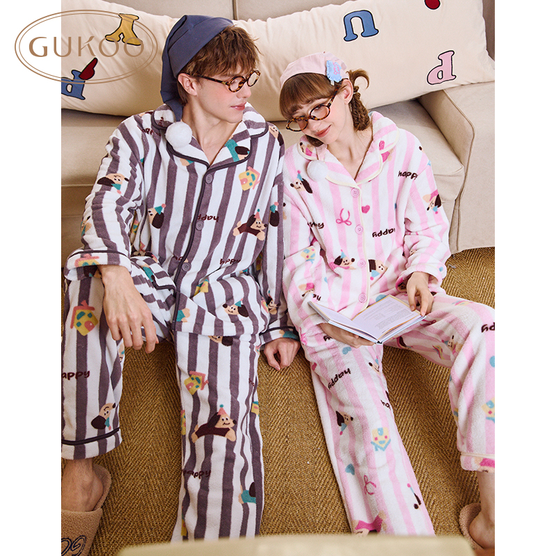 轰轰小狗加绒保暖情侣家居服套装 Gukoo 果壳睡衣女秋冬款