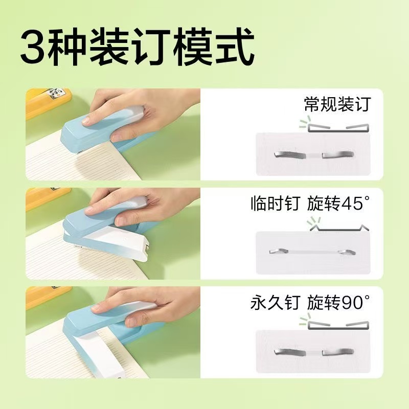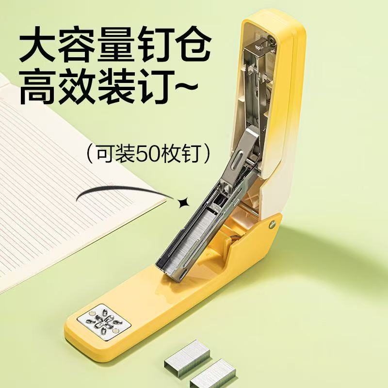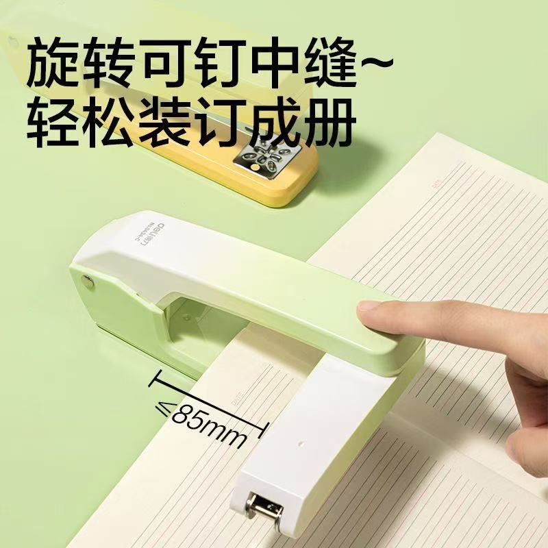 得力可旋转订书机学生用渐变订书器办公用大号加厚钉书机家用型多功能大号文具省力12号定书机钉办公用品