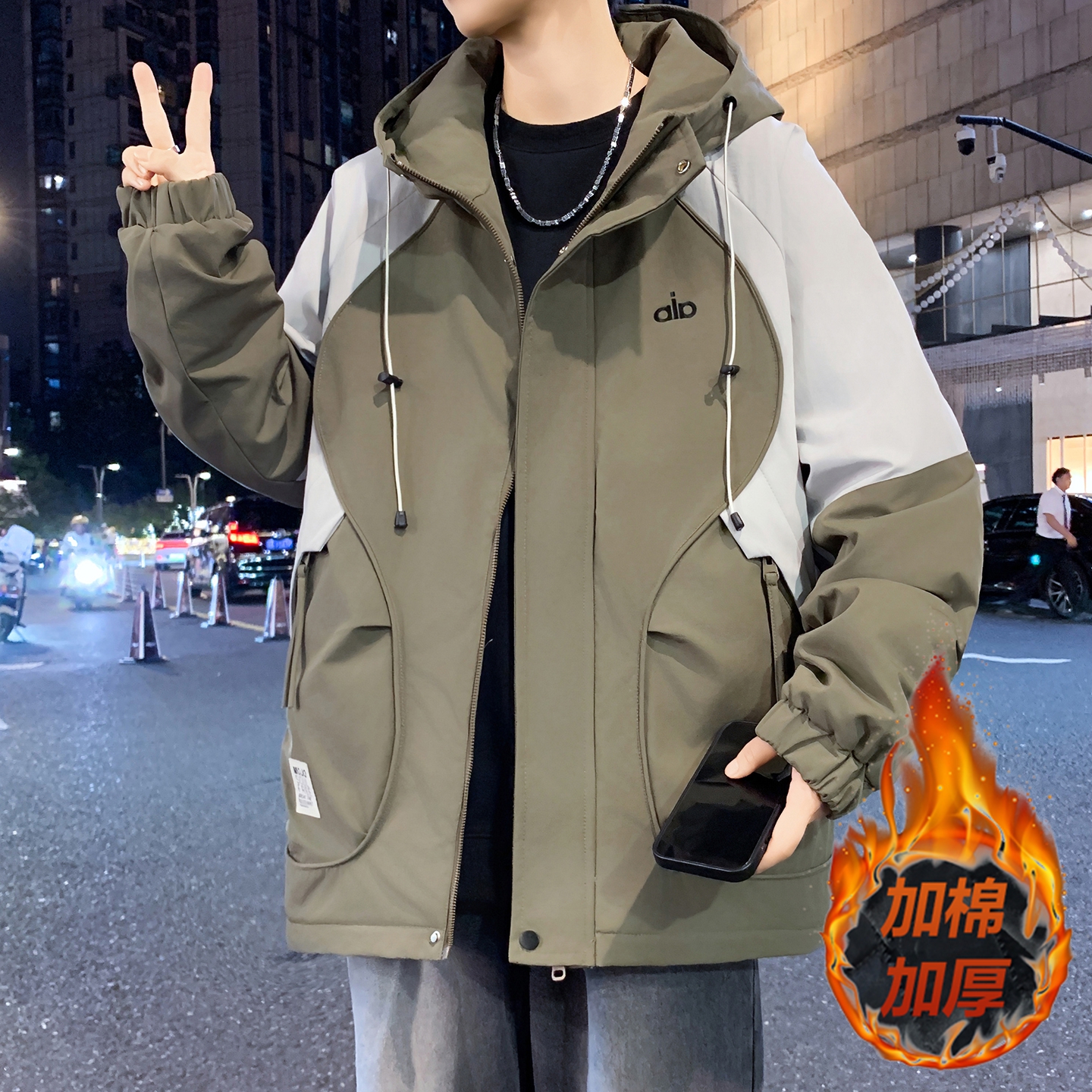 青少年夹克三件套2025新款 帅气上衣男生外套 春秋冬连帽假两件套装