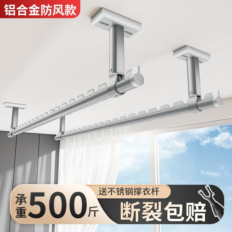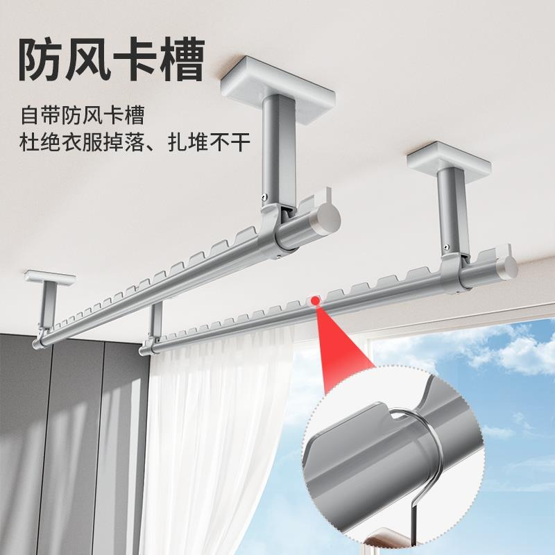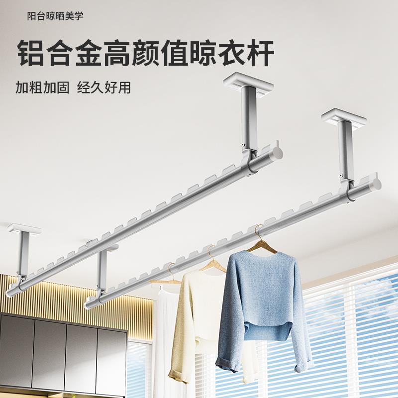晾衣杆阳台固定式 家用防风晒衣杆一根铝合金打孔凉衣捍 晾衣架顶装
