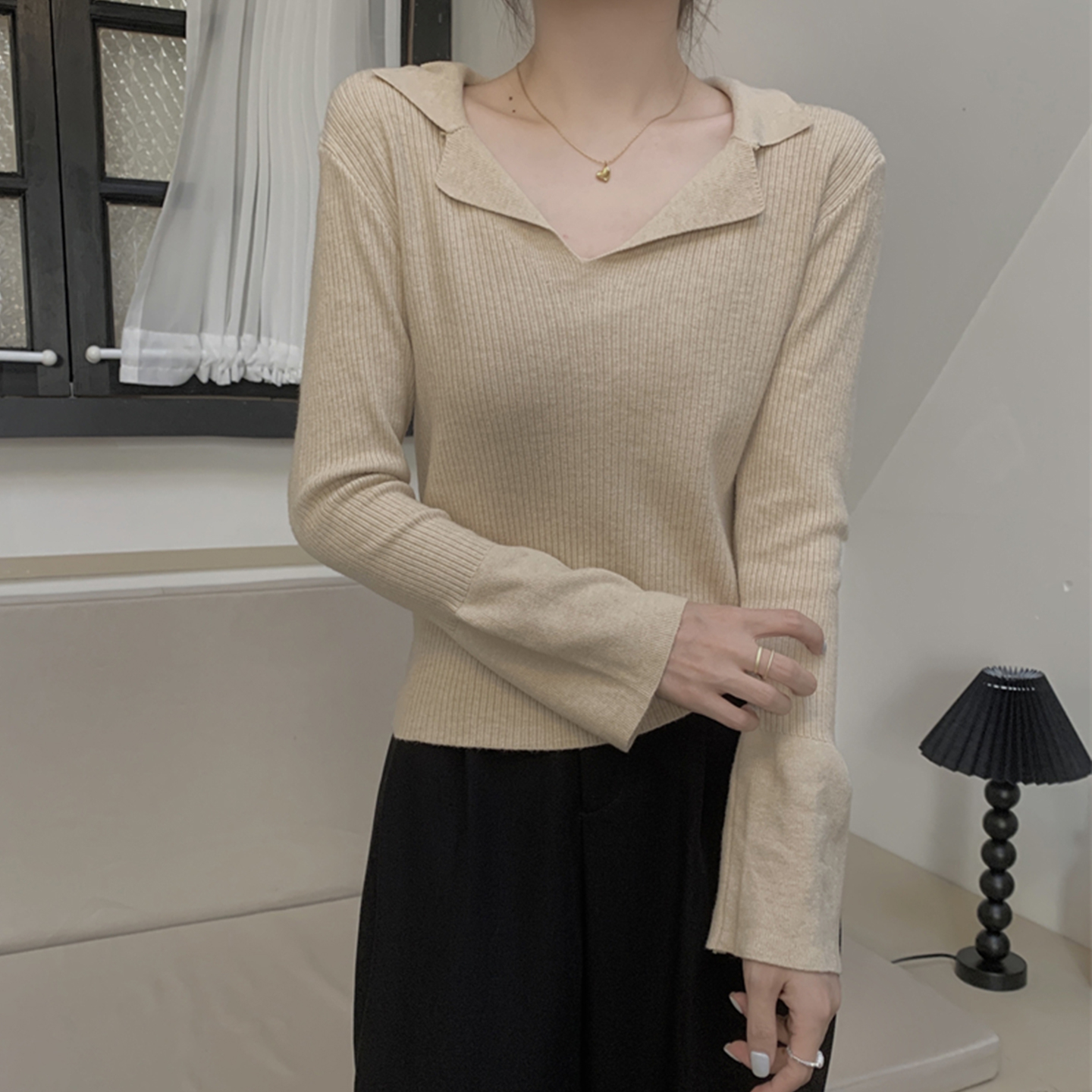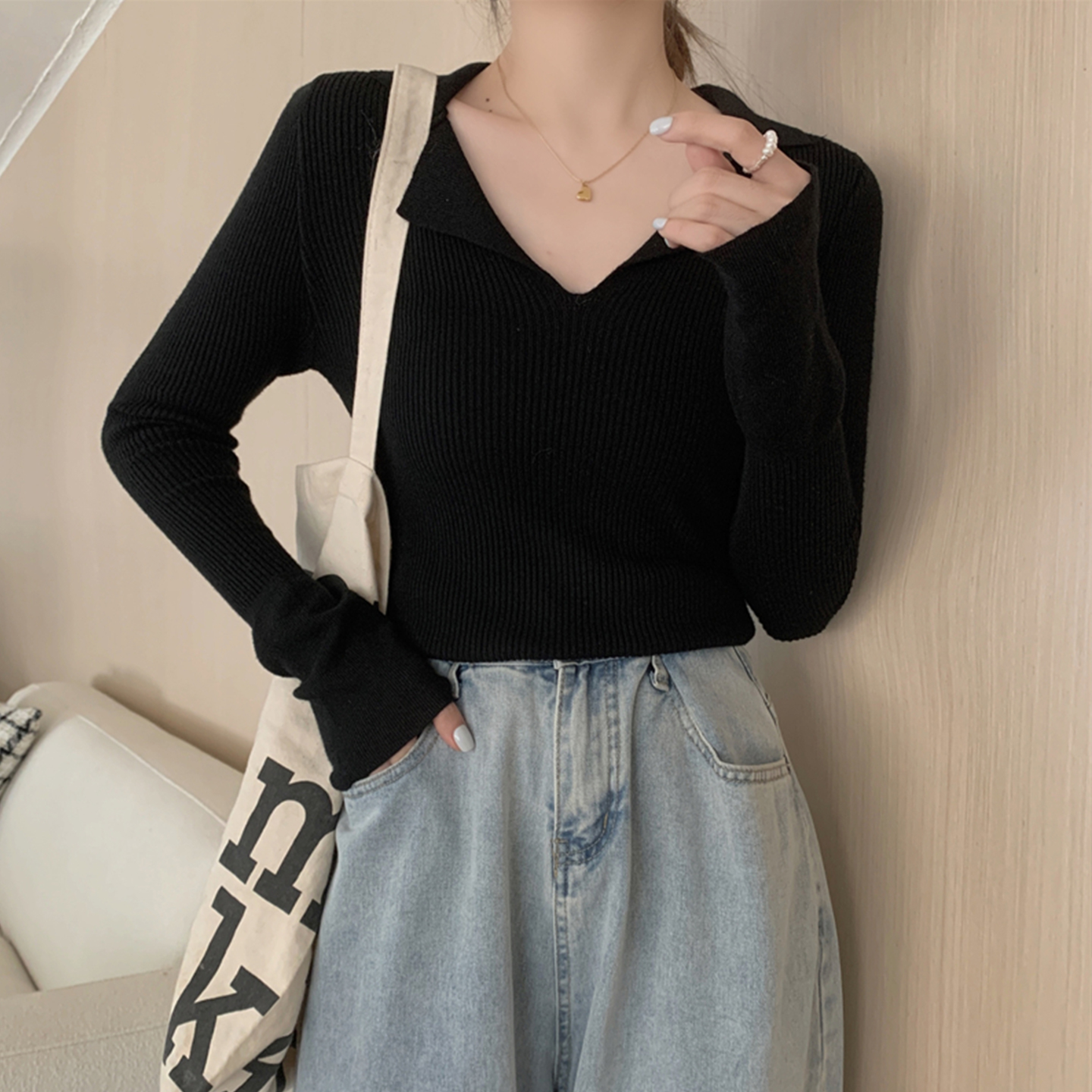 POLO针织衫 大码 设计感打底衫 新款 胖mm遮肉显瘦内搭上衣 女秋季 法式
