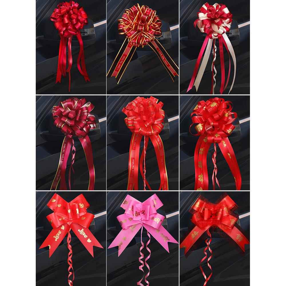 车队喜字婚车拉花结婚装 饰彩带婚礼被子蝴蝶结扎花布置扶手门把手