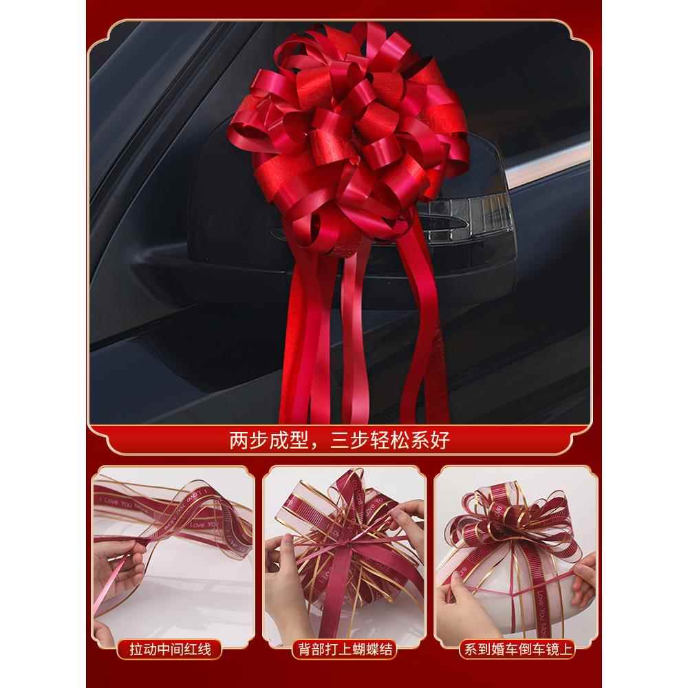婚车拉花结婚装 饰接亲车队大号手汽车红丝带副车彩带婚礼用品大全