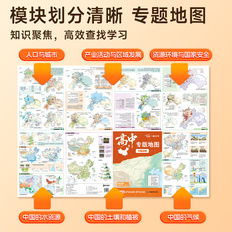 时光学 饰 2025新版 学生地图大尺寸家用墙贴挂图墙面装 高中地理图文详解地图册学习气候水系地形图 高中专用中国地图和世界地图