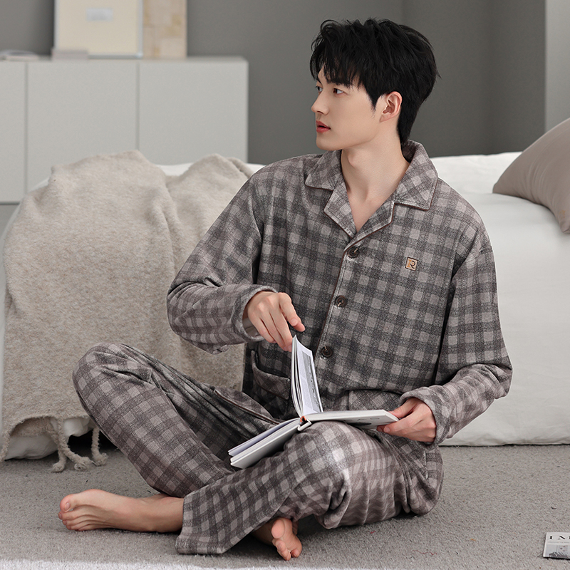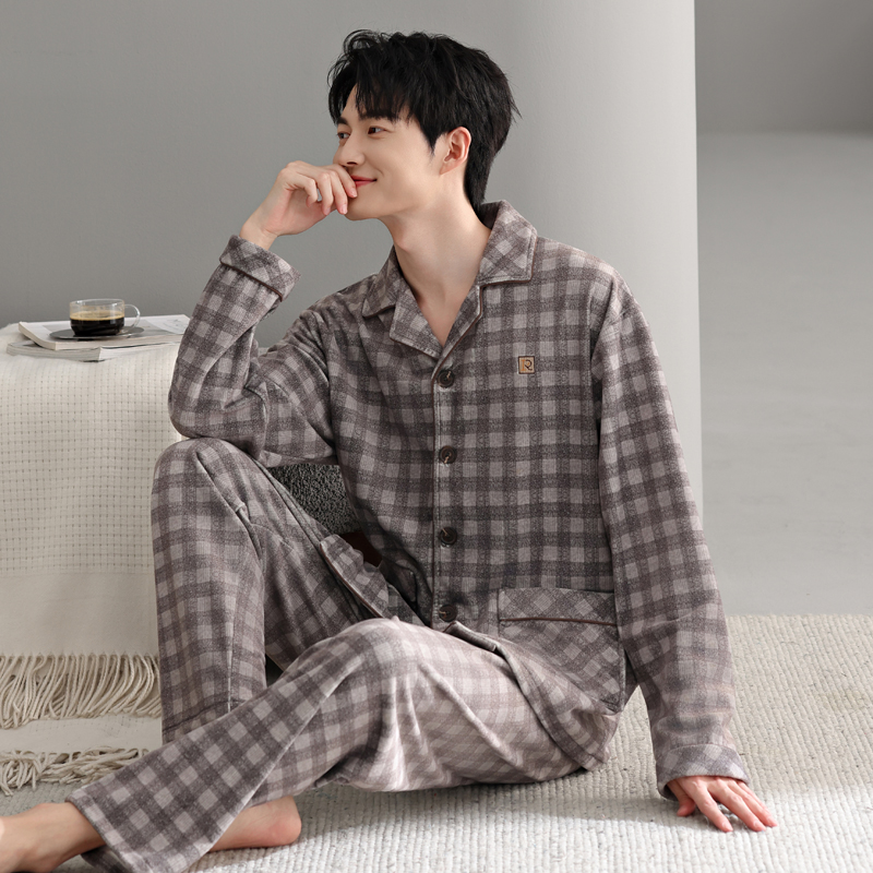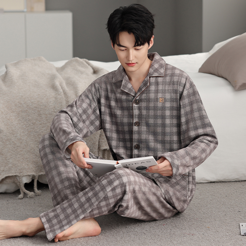 海岛绒睡衣男格子秋冬季 加绒薄绒保暖宽松可外穿春秋珊瑚绒家居服