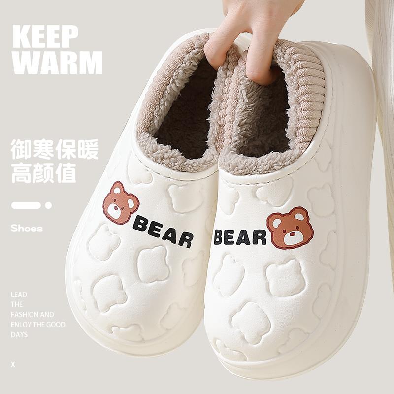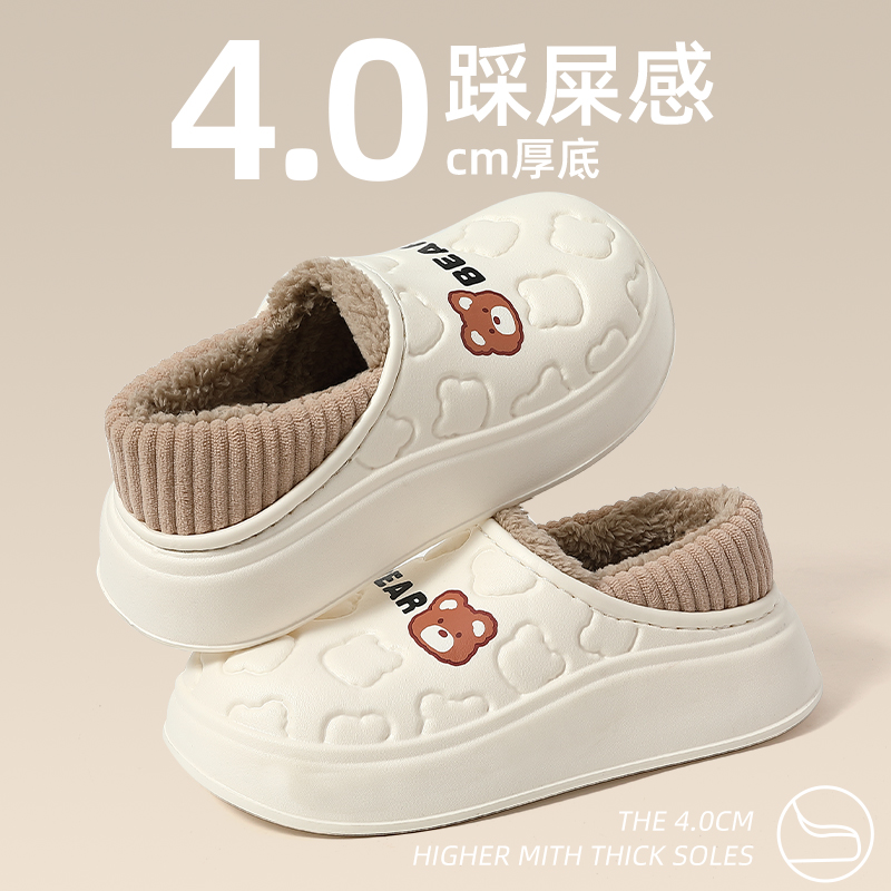 包跟外穿保暖毛绒月子棉鞋 室内家居2025新款 女士秋冬季 防水棉拖鞋