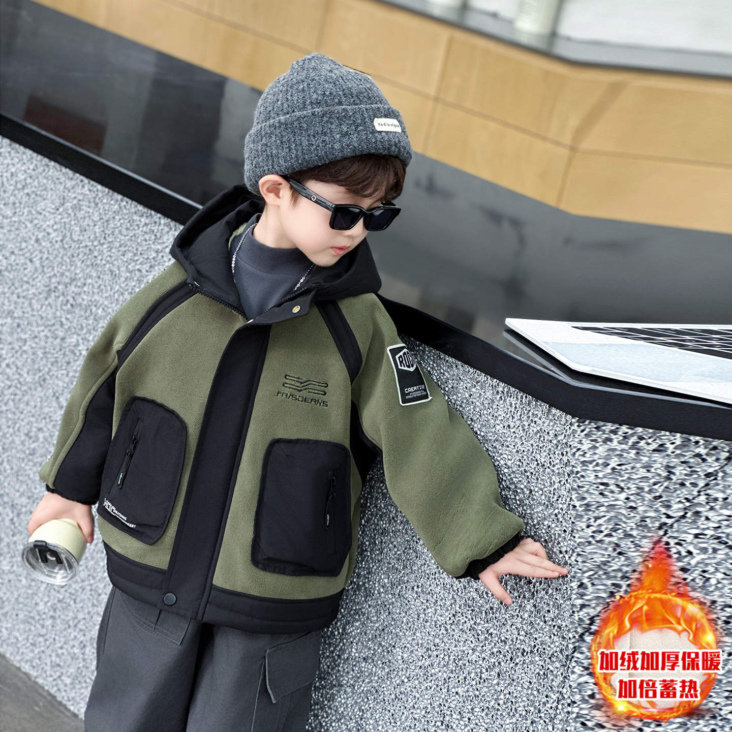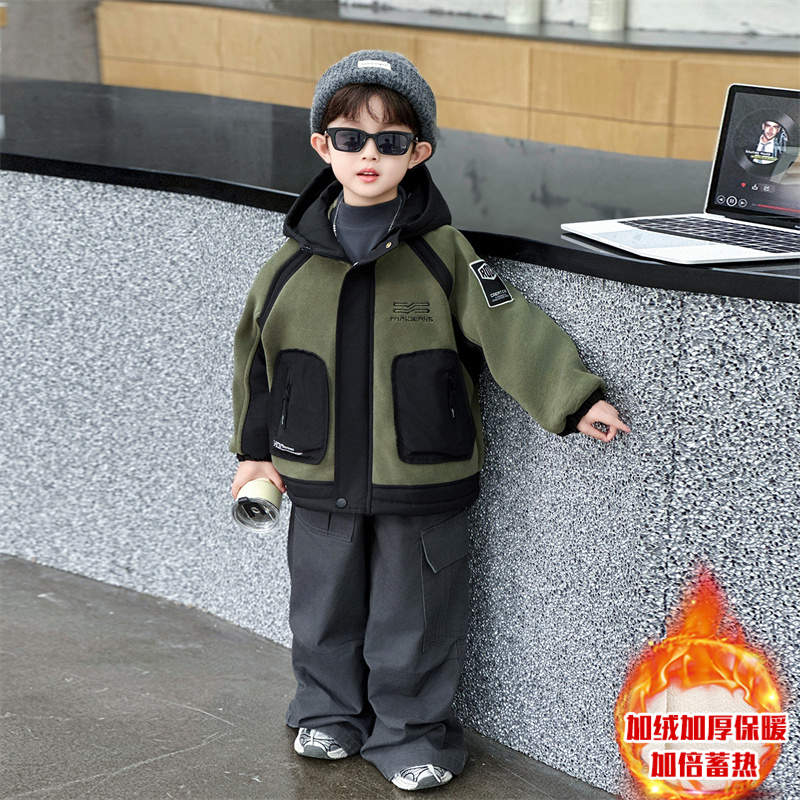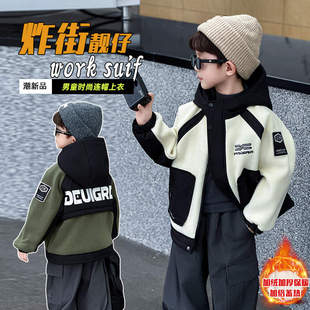 棉夹克潮帅 奥粒绒儿童派克服酷帅冬装 男童加绒外套2025新款 秋冬季