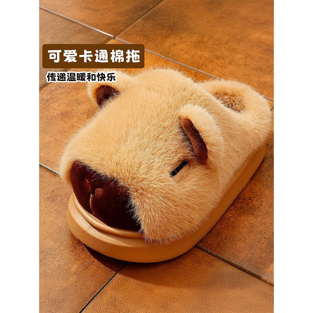 保暖防滑加绒女大童亲子棉鞋 卡皮巴拉儿童棉拖鞋 男孩拖鞋 新款 冬季