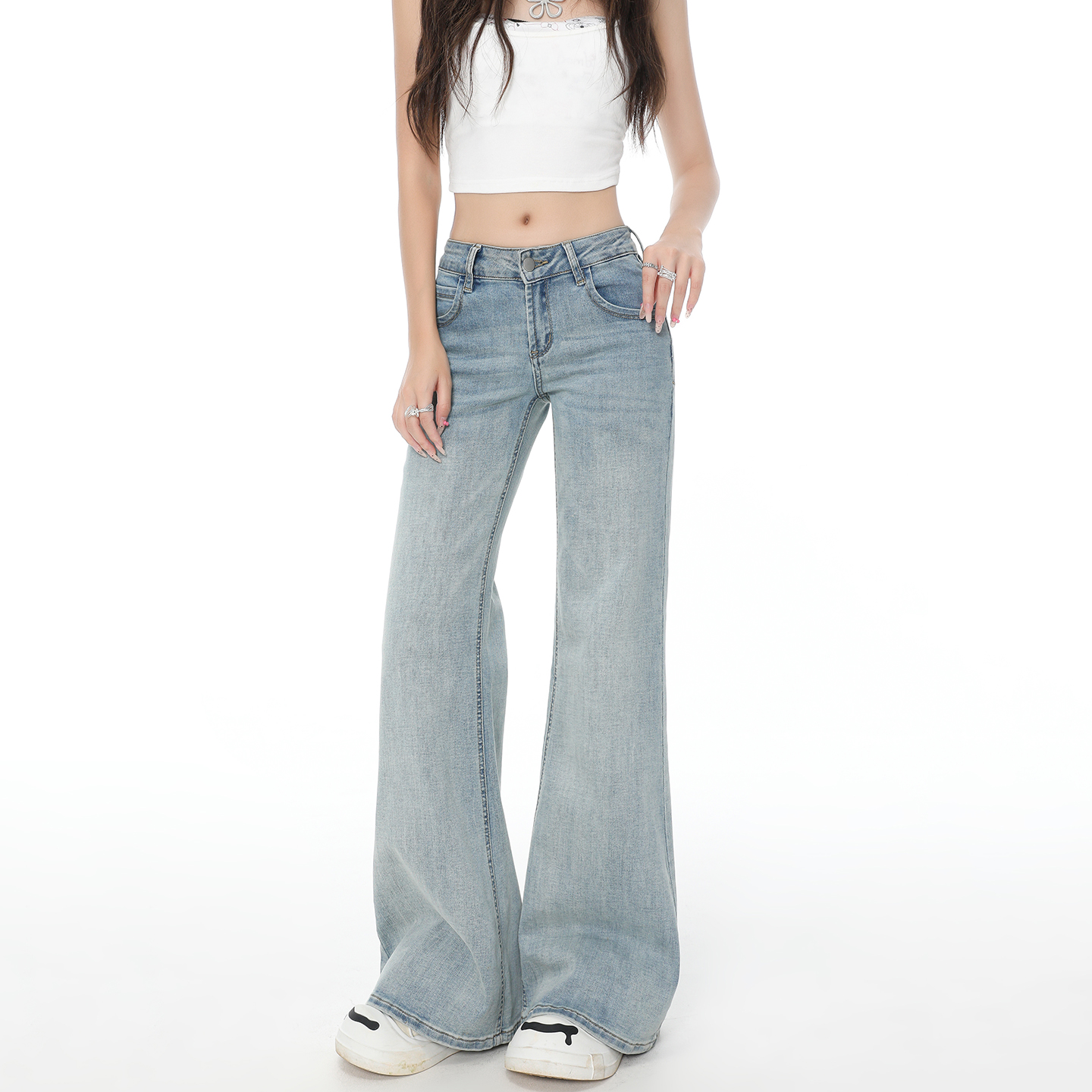 高腰宽松显瘦高个子直筒裤 2025新款 子 女春秋季 磨破毛边阔腿牛仔裤