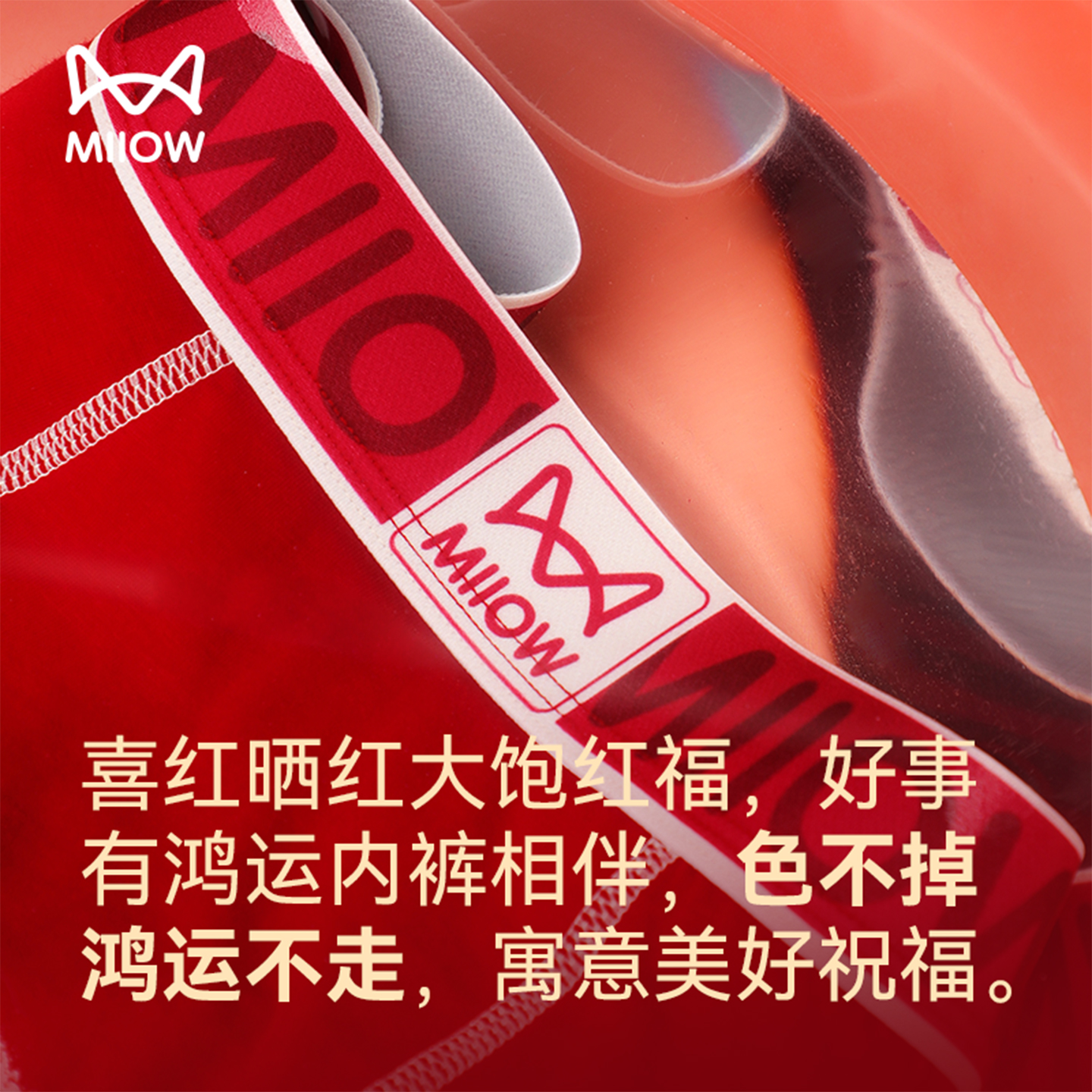 大红透气平角短裤 猫人本命年男士 2025新款 纯棉抗菌裆四角裤 衩 内裤