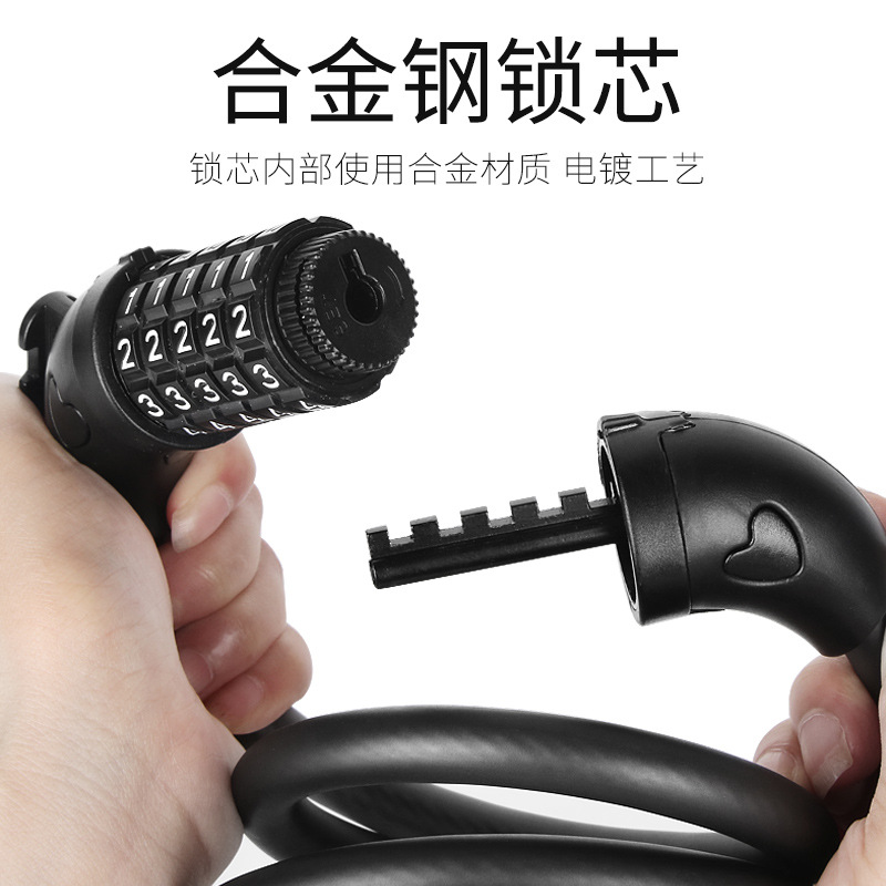 自行车密码 锁防盗锁防偷锁电瓶车5位山地车锁单车链条锁抗剪便携
