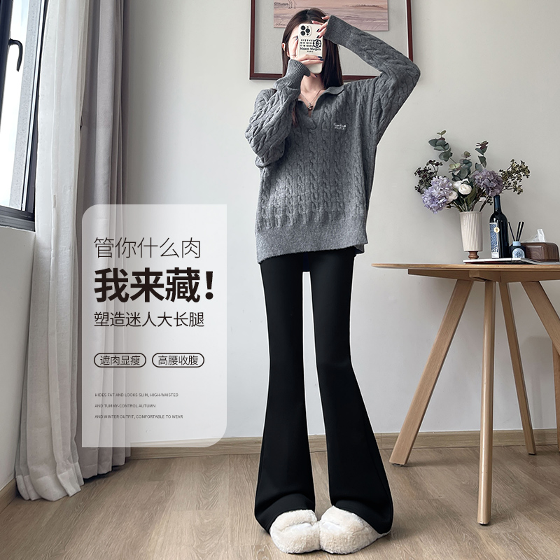 子 微喇叭休闲打底保暖裤 秋冬加绒马蹄裤 女外穿高腰紧身显瘦瑜伽裤