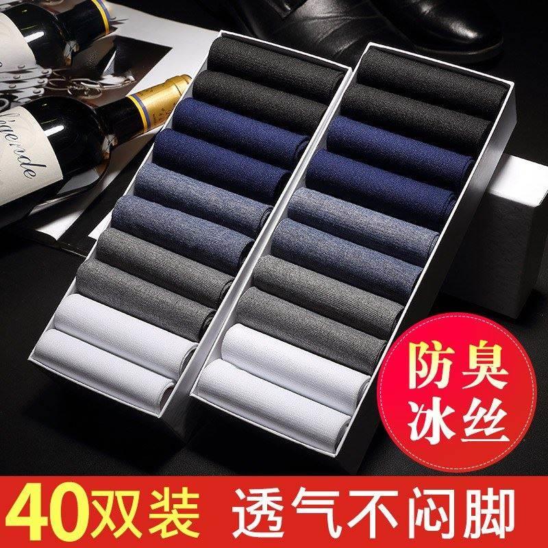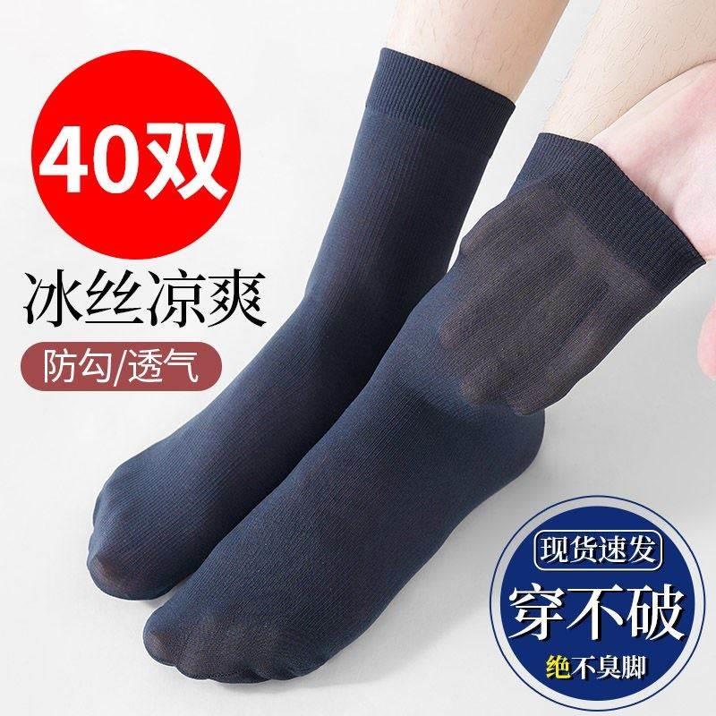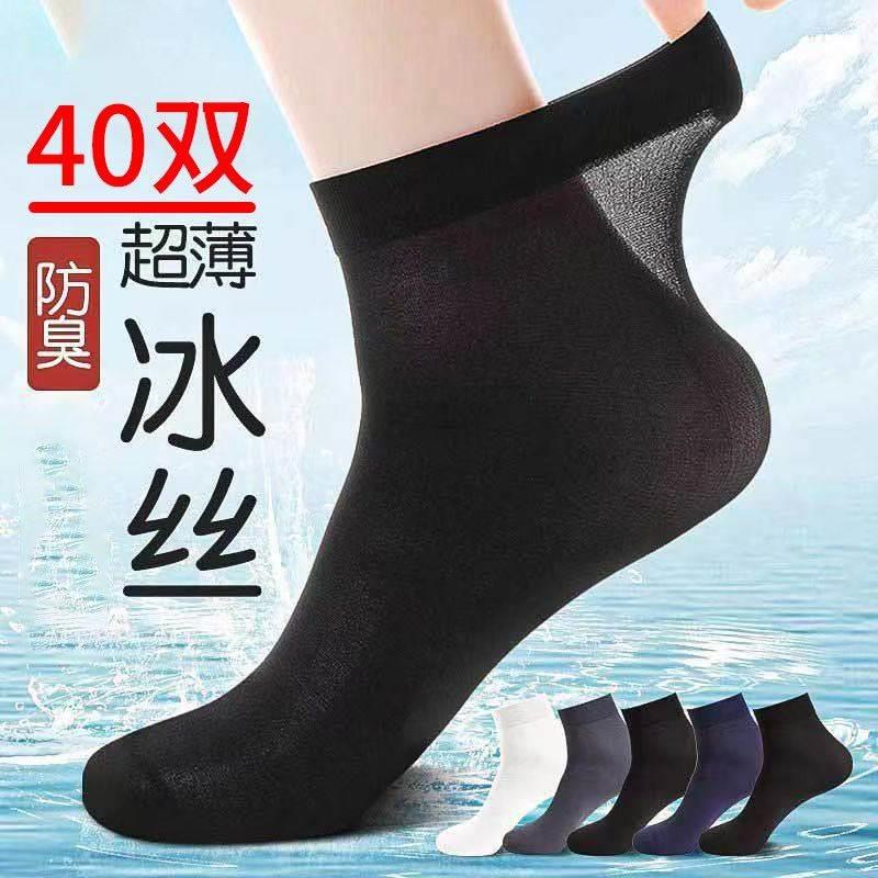 袜子夏薄款 男款 耐磨钢丝袜黑色冰丝袜防臭中短袜 丝袜短款 40双男士