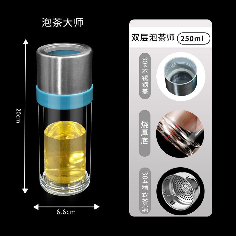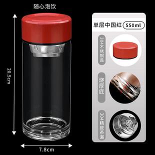 定制商务水杯耐高温双层隔热茶水分离高硼硅玻璃杯男女士杯子茶杯