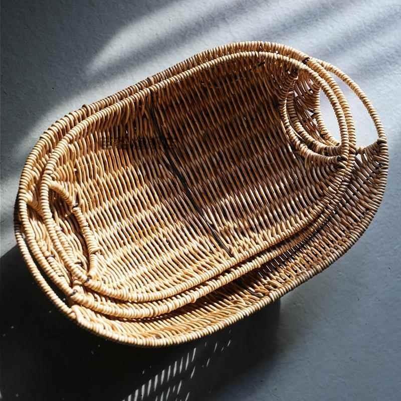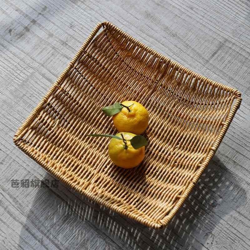 小吃篮子藤编竹编织薯条盘水果篮长方形客厅家用油炸竹篮托盘商用