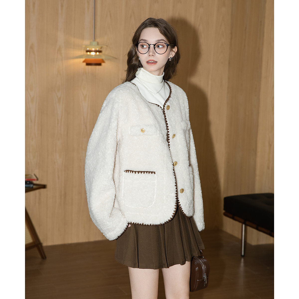 唐狮秋冬季 加厚外套女圆领小香风仿羊羔毛超好看气质淑女TU 短款